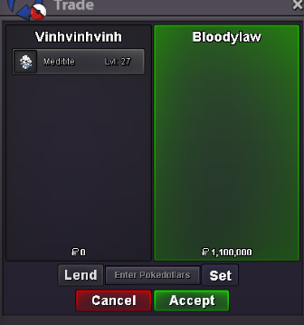 Start Price: 1m End Point: 48 hours after the start price is met No Insta Minimum Raise: 50k Accepted Payments: Pokedollars Coin Capsules (1 CC = 480k) IV Reroll Tickets (1 IV Reroll = 730k) Apply rule: 15 minutes Time Countdown: https://thorsenlabs.com/timer?172800/1760941028