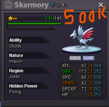 Caubemuadong started following Godly skarmory sturdy 30 speed 27+