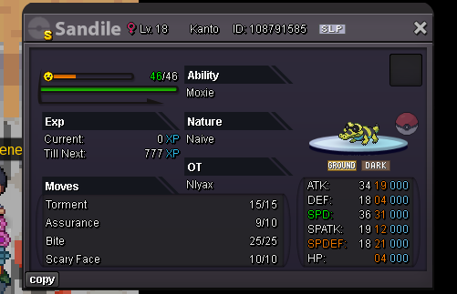 Nlyax started following PVP'able Naive Max Speed Shiny Sandile Moxie