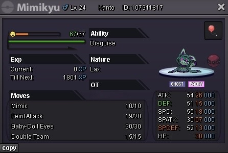 Semi godly Mimikyu adamant ATK 31/SPEED 29 close