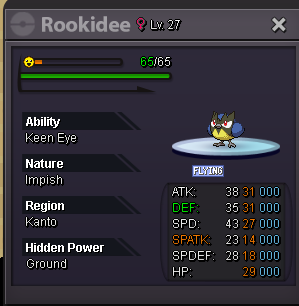 Impish Rookidee. ATK 31. DEF 31. SPD 30. SPDEF 27. HP 29.