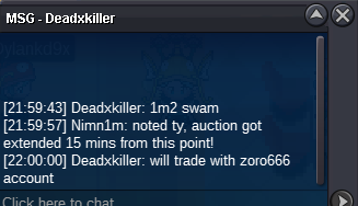 Start price 1m min raise 200k 25m insta duration 48hrs after first bid is posted on forum. if its a screenshot from in game we take the time the pm is send and keep that as start time. Payment options cash cc=450k GOLD auction if u from silver u transfer. Alts accepted mention ur name Goodluck! contact me ign: Exei0i discord : shadow043893 Edited 23 minutes ago by Exei0i