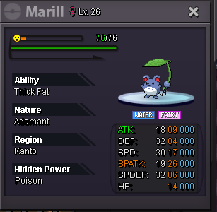 selling the new form marill halloween fresh caught today. insta on marill 1m a few other pokemon show here. Have level 100 aurorus pvpable if anyone interested its 100k have the diglett hw 10 outfit for sale c.o 120k or offer. trade for decent muk or tangrowth. message me on gold server 'Boatslanger' I buy ev berries or trade poke for. Trade the marill to a decent ferrothorn or shuckle thank you for your time.
