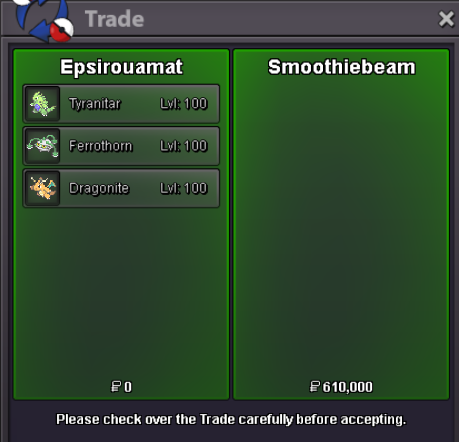 Payment Methods: Pokedollars CC = 500K Nature Reroll = 350K IV Reroll Ticket = 720K hatterene start : 2m clodsire and primeape start : 200k toxtricity start : 1m N/A min bid 100k each 48 hours after first bid for each mon 15min rules