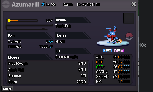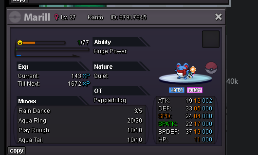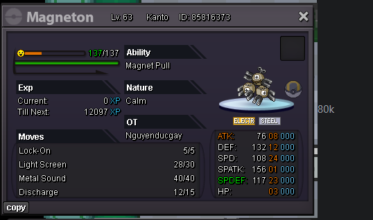10. Auction Details: Start Price: 1m End Point: 30 hours (after start price is met) Insta Price: n/a Minimum Raise: 200k Accepted Payments: Pokedollars, Coin Capsules (x1 Coin Capsule = 500k), IV Reroll Tickets (x1 IV Reroll Ticket = 750k) Important Reminders This is a silver Server auction. You may bid from any server but you must transfer to silver Server upon winning the auction. If you intend to purchase with an alternate account or from other server, please specify the account name and/or server name alongside your bid. 15 minutes rule is applied. (If a bid is received in the final 15 minutes of the auction, the end point will be delayed by 15 minutes from that bid, and will be delayed by 15 minutes for each new bid thereafter, until the current offer has been held for a full 15 minutes) Please check the Trade Rules and Auction Rules if you are new to trading in PRO