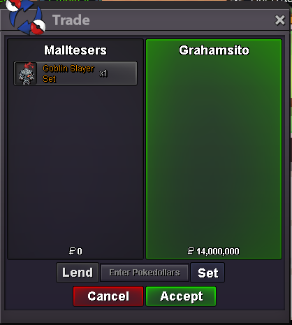 S.o : 25m End : 48 hours after starting offer in met Min Bid : 200k No insta Accepted payments : Pokedollars, Coin capsules (480k each), IV reroll tickets (720k each) Thanks and good luck for those interested