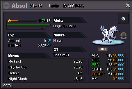 Thesim91 started following Auction - Naive Absol (27 SPD-30 ATK-29 SP.ATK)