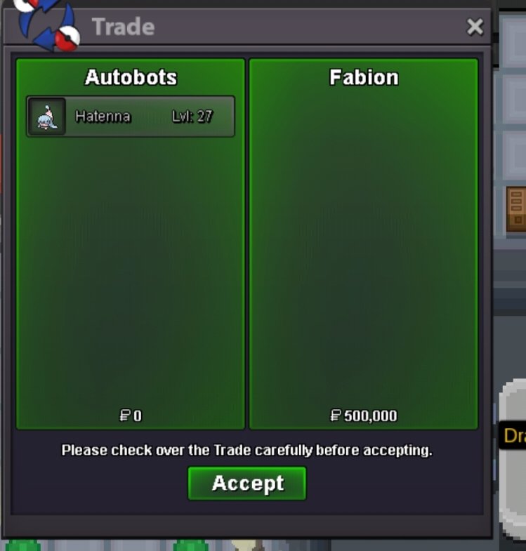 3. Start offer: 100k End Point: 24 hours after starting bid Insta price: no insta Minimum Raise: 20k Accepted Payments: Pokedollars, coin capsule=500k, Reroll tickets=750k