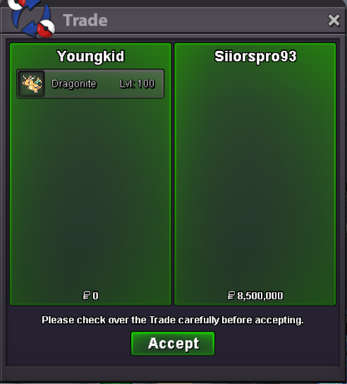 Details: Start Price : 500k Min Bid: 100k Insta: 2m End point: 48 hours after initial bid Accepted Payment: Pokedollars, Coin Capsules (x1 Coin Capsule = 500k) This is a silver Server auction. You may bid from any server but you must transfer to silver Server upon winning the auction. You may place bids here or in game. The 15 Minute rule will go into effect if a bid is placed in the last 15 minutes