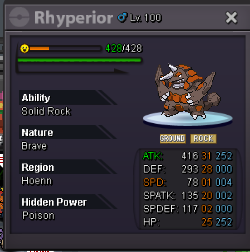 auction for pack bundle (if you win auction you get all the 3 pokemons) : ps : this is a cross-server auction i will transfer to your server of choice ! 1) Moxie ablity + 01spd ( high jump kick-crunch - poison jab + Bulk up set or DD or Sword dance up to you !) 2) Brave nature Swarm Fell Stinger(+3 atk move) - iron head -drill run - knock off 3) 31atk / 01 spd choice band rhyperior S.o : 1m minimum bid : 100k auction end 3 days after first bid . payement : pokedollars coin capsules = 500k each rr tickets = 700k each