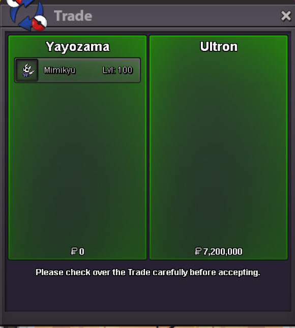 Start Price: 3m End Point: 72 hours (after start price is met) Insta Price: N/A Minimum Raise: 200k Accepted Payments: Pokedollars / 1x CC = 450k / 1x IV RR = 600k