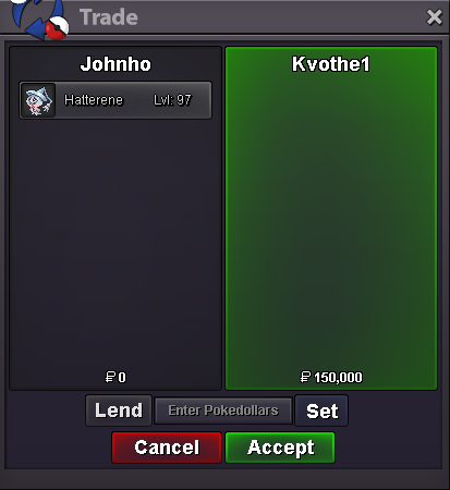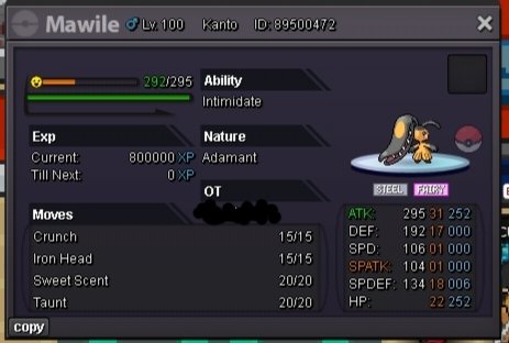 Auction Details: Start Price: 1m End Point: 48 hours (after start price is met) Insta Price: 10m Minimum Raise: 100k Accepted Payments: Pokedollars, Coin Capsules (x1 Coin Capsule = 500k), IV Reroll Tickets (x1 IV Reroll Ticket = 725k) Important Reminders: -This is a Gold Server auction. You may bid from any server, but you are responsible for transfer upon winning. -If you intend to purchase with an alt account, specify the account alongside your bid. -If a bid is received in the final 15 minutes of the auction, the end point will be delayed by 15 minutes from that bid, and will be delayed by 15 minutes for each new bid thereafter, until the current offer has been held for a full 15 minutes