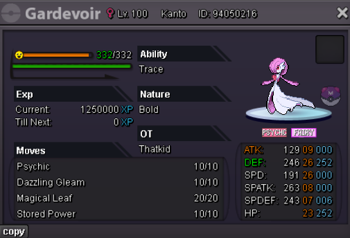 Start Price: 1m Insta Price: 15m End Point: 72 hours (after start price is met) Minimum Raise: 200k Accepted Payments: Pokedollars, Coin Capsules (x1 Coin Capsule = 450k), IV Reroll Tickets (x1 IV Reroll Ticket = 700k) Important Reminders: This is a Cross Server auction. You may bid from any server, and I will transfer to your preferred server upon winning. If a bid is received in the final 15 minutes of the auction, the end point will be delayed by 15 minutes from that bid, and will be delayed by 15 minutes for each new bid thereafter, until the current offer has been held for a full 15 minutes.
