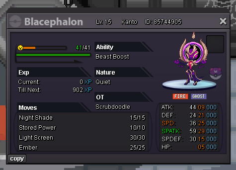 Note: A Dark Star–themed Pokémon — a Halloween sub-genre found only in the Haunted Cave Depths. Making its first public appearance at auction, this marks a singular opportunity to add this exclusive piece to your collection. Auction Details: Start Price: 10m End Point: 72 hours (after start price is met) Insta Price: N/A Minimum Raise: 200k Accepted Payments: Pokedollars, IV Reroll Tickets (x1 IV Reroll Ticket = 750k) Important Reminders: This is a Gold Server auction. However, you may bid from any server, and I will transfer to your preferred server upon winning. If you intend to purchase with an alt account, specify the account alongside your bid. If a bid is received in the final 15 minutes of the auction, the end point will be delayed by 15 minutes from that bid, and will be delayed by 15 minutes for each new bid thereafter, until the current offer has been held for a full 15 minutes. Happy Bidding!