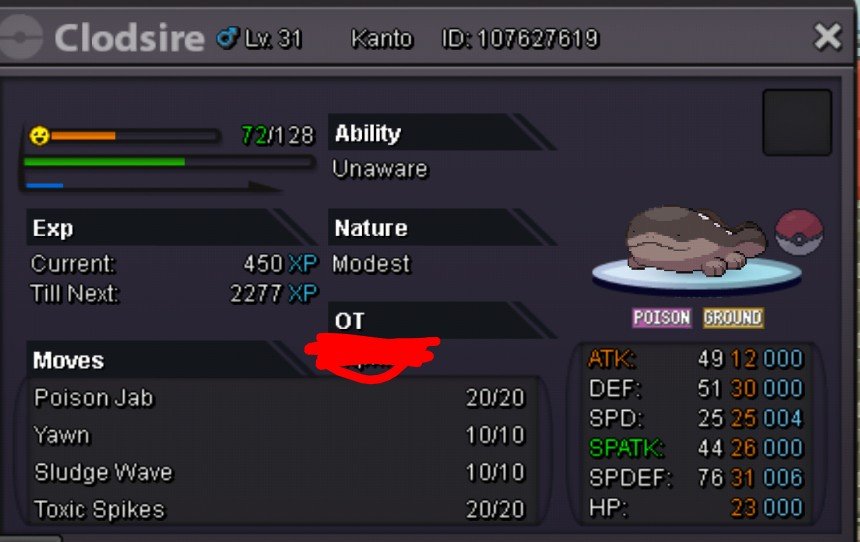 Clodsire — The Unaware Poison Wall! > “He ignores your boosts, poisons your dreams, and stands unshaken ” Nature: Modest Ability: Unaware Region: Kanto --- Start Price: 800k Min Raise: 200k Cc 450k Duration: 48 hours after first valid offer Bids Accepted: Forum & In-Game Chat --- This Unaware beast doesn’t care about your setup — it shrugs off hits and spreads toxic fear! Grab it before it sinks back into the swamp...