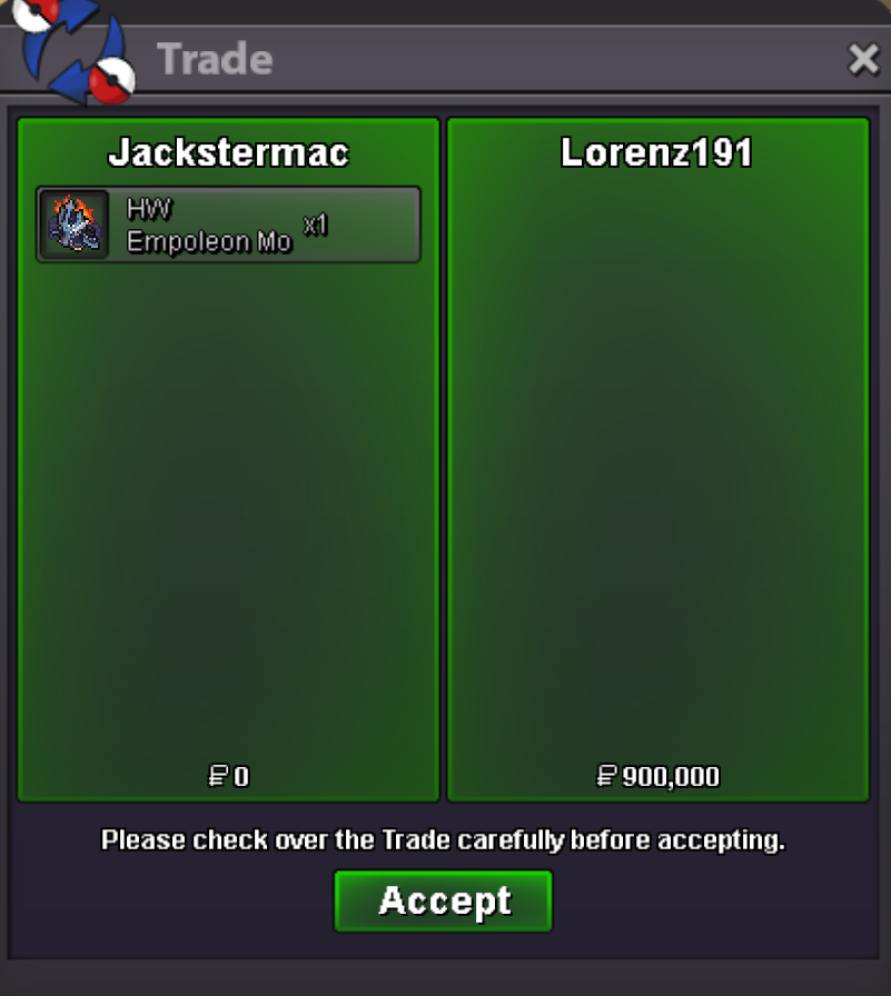 Alt account: Sumocal (Silver Server) Auction Details: Start Price: 2m End Point: 48 hours (after start price is met) Insta Price: N/A Minimum Raise: 100k Accepted Payments: Pokedollars, Coin Capsules (x1 Coin Capsule = 500k), IV Reroll Tickets (x1 IV Reroll Ticket = 750k) Important Reminders: This is a Silver Server auction. If bidding from an alternative server, state that you will transfer upon winning. If you intend to purchase with an alt account, specify the account alongside your bid. If a bid is received in the final 15 minutes of the auction, the end point will be delayed by 15 minutes from that bid, and will be delayed by 15 minutes for each new bid thereafter, until the current offer has been held for a full 15 minutes. Happy Bidding!