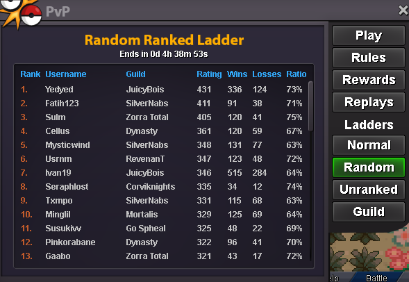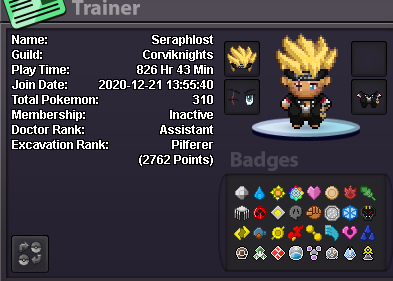 ● What's your in-game name? seraphlost ● How old are you? 19 ● Are you active in Discord? yes daily ● Where are you from? India ● What's your total playtime? 800+ hrs ● What's your goal in PRO? achieve ladder in pvp and collect forms ● What do you enjoy while playing the game? pvp and hunting ● Why do you want to be part of the guild? I know how to play pv but i dont have teams nor pokemon to do so ● What's your favourite Pokemon and why? tapu lele, hits hard