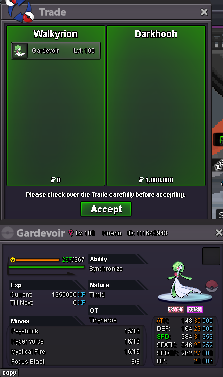 Auction Details - Starting Price : 5m - Min Raise : 250k - No Insta Price - Accepted Payments : Pokedollars, Coin capsule (500k), IV Reroll Ticket (750k), Nature Reroll Ticket (350k) - Time Duration : 3 Days / 72 hours - The Auction will start when the starting price is met. Important Reminders -This is a Cross Server Auction. You may bid from any server but you need to transfer to Silver server upon winning. - If you intent to purchase with an alt account, specify the account alongside your bid. - If a bid is received in the final 15 minutes of the auction, the end points will be extended by 15 minutes from that bid, and will be extended by 15 minutes for each new bid thereafter, until the current offers has been held for a full 15 minutes. May the RNG-Gods be upon y’all