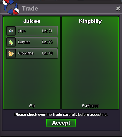 Auction Details: Start Price: 2m End Point: 48 hours (after start price is met) Insta Price: N/A Minimum Raise: 200k Accepted Payments: Pokedollars, Coin Capsules (500k each)