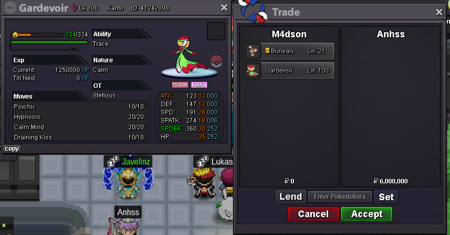 Auctions over @Luis30 won the porygon2 for 2.3m @Trinzy won the scyther for 100k PM me at my discord or in-game to arrange trades Discord: _gh0st12