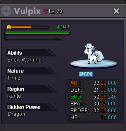 Details: Start Price : 1m Min Bid: 200k Insta: n/a End point: 48 hours after initial bid Accepted Payment: Pokedollars, Coin Capsules (x1 Coin Capsule = 500k) This is a silver Server auction. You may bid from any server but you must transfer to silver Server upon winning the auction. You may place bids here or in game. The 15 Minute rule will go into effect if a bid is placed in the last 15 minutes