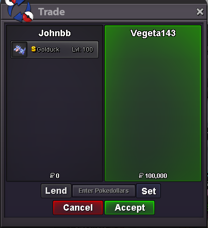9. Important Reminders This is a Gold Server auction. You may bid from any server but you must transfer to Gold Server upon winning the auction. If you intend to purchase with an alternate account or from other server, please specify the account name and/or server name alongside your bid. 15 minutes rule is applied. (If a bid is received in the final 15 minutes of the auction, the end point will be delayed by 15 minutes from that bid, and will be delayed by 15 minutes for each new bid thereafter, until the current offer has been held for a full 15 minutes) Please check the Trade Rules and Auction Rules if you are new to trading in PRO Auction Details Start Price: 2m End Point: 48 Hours (after start) Insta Price: 5m Minimum Raise: 50K Accepted Payments: Pokedollars,CC=500k,RerollTicket=700k Server Name: gold Auction Details Start Price: 1m End Point: 48 Hours (after start) Insta Price: 3m Minimum Raise: 50K Accepted Payments: Pokedollars,CC=500k,RerollTicket=700k Server Name: gold Auction Details Start Price: 100k End Point: 48 Hours (after start) Insta Price: 300k Minimum Raise: 50K Accepted Payments: Pokedollars,CC=500k,RerollTicket=700k Server Name: gold