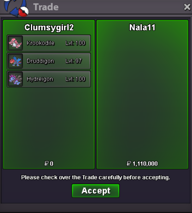 Start Price: 1m End Point: 48 hours (after start price is met) Insta Price: N/A Minimum Raise: 100k Accepted Payments: Pokedollars CC = 500K