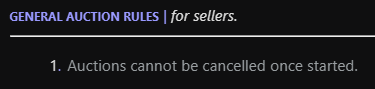 Hello @Freezylazy, Please make sure to include an end time in your next auction. You can use a countdown link, but the duration must also be written clearly. Best regards, Hizukii