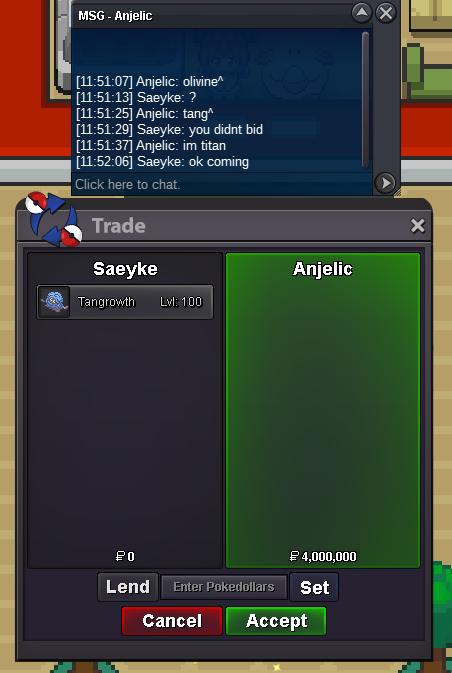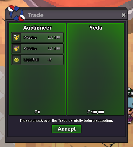 Alt account: Auctioneer (Gold Server) Auction Details: Start Price: 100k End Point: 1 hour (after start price is met) Insta Price: N/A Minimum Raise: 100k Accepted Payments: Pokedollars, Coin Capsules (x1 Coin Capsule = 480k), IV Reroll Tickets (x1 IV Reroll Ticket = 730k) Important Reminders: This is a Gold Server auction. If bidding from an alternative server, state that you will transfer upon winning. If you intend to purchase with an alt account, specify the account alongside your bid. If a bid is received in the final 15 minutes of the auction, the end point will be delayed by 15 minutes from that bid, and will be delayed by 15 minutes for each new bid thereafter, until the current offer has been held for a full 15 minutes. Happy Bidding!