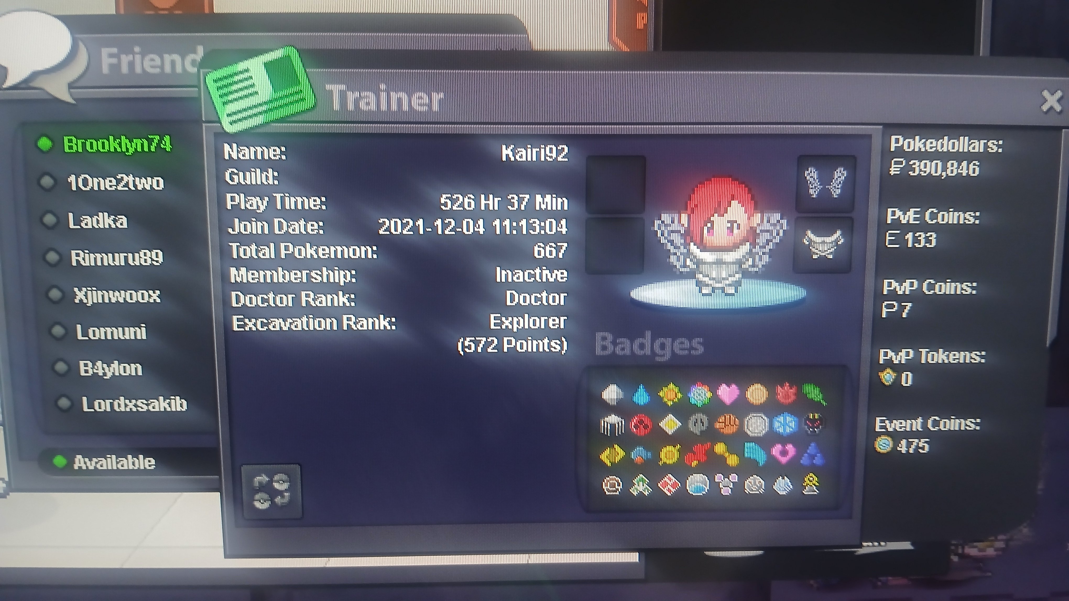 1. What's your Player name (IGN)? - Kairi92 2. Number of hours played? - 526 hours 3. What's your favorite Pokemon? - Mismagius 4. What do you enjoy doing the most in PRO? (Hunting, Dungeons, PvP, trading, etc) - Probably hunting and dungeons >.< 5. Trainer Card: 6. I discovered pokemon games through a romhack called "pokemon ash gray" in 2016. After finishing that romhack i emulated the official games starting from fire red till gen 7 (also probably my favourite :3) 7. My favourite icecream flavour is dark chocolate