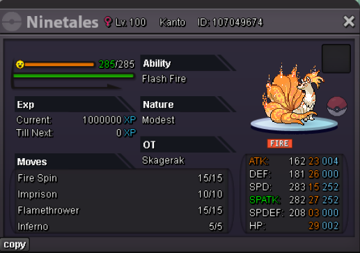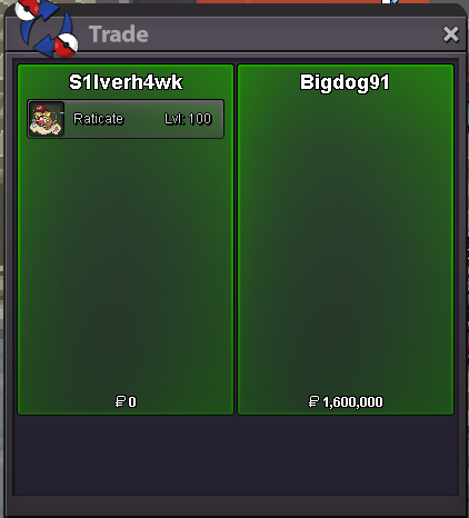 Alt account: Auctioneer (Gold Server) Auction Details: Start Price: 100k End Point: 1 hour (after start price is met) Insta Price: N/A Minimum Raise: 100k Accepted Payments: Pokedollars, Coin Capsules (x1 Coin Capsule = 480k), IV Reroll Tickets (x1 IV Reroll Ticket = 730k) Important Reminders: This is a Gold Server auction. If bidding from an alternative server, state that you will transfer upon winning. If you intend to purchase with an alt account, specify the account alongside your bid. If a bid is received in the final 15 minutes of the auction, the end point will be delayed by 15 minutes from that bid, and will be delayed by 15 minutes for each new bid thereafter, until the current offer has been held for a full 15 minutes. Happy Bidding!