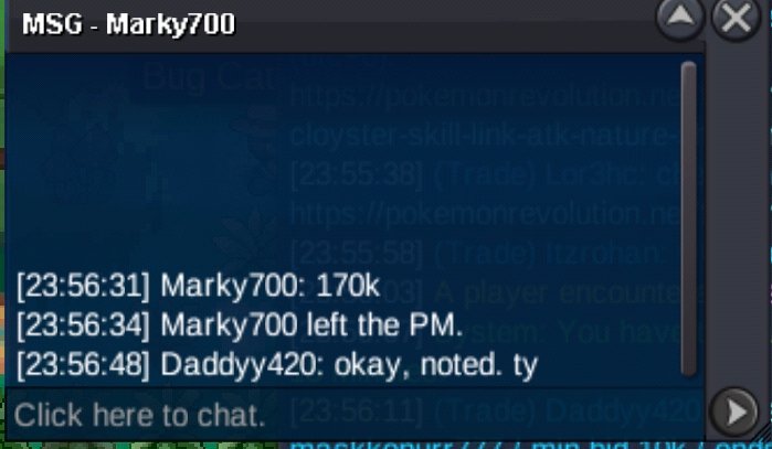 Starting the auction : 5M Minimum bid : 200k Instant sale : No The auction will end 48 hours after the first bid. Accepted payments: Pokedollars Reroll Ticket: 650k each. Coin Capsule: 470k each. Black Medallion: 225k each .