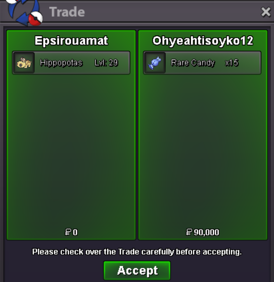 Start Price: 2m End Point: 48 hours (after start) No Insta Min Raise: 200k Accepted Payments: Pokedollars, Coin Capsule = 500k, IV Reroll Ticket = 700k
