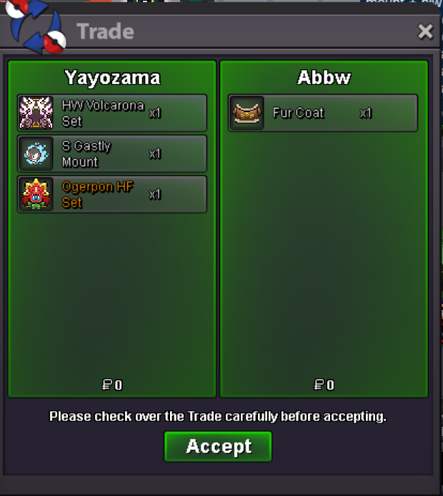 Auction Details: Start Price: 800k End Point: 48 hours (after start price is met) Insta Price: N/A Minimum Raise: 50k Accepted Payments: Pokedollars, Coin Capsules (x1 Coin Capsule = 500k), IV Reroll Tickets (x1 IV Reroll Ticket = 700k) mportant Reminders: If you intend to purchase with an alt account, specify the account alongside your bid. If a bid is received in the final 15 minutes of the auction, the end point will be delayed by 15 minutes from that bid, and will be delayed by 15 minutes for each new bid thereafter, until the current offer has been held for a full 15 minutes.