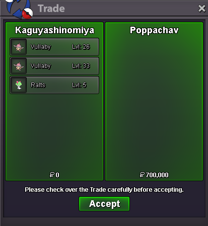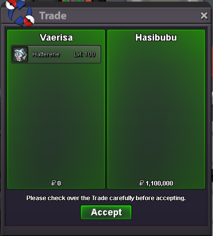 Start Price: 1.5M End Point: 24 hours (after start price is met) Insta Price: 3.5M Minimum Raise: 100k Accepted Payments: Pokedollars, Coin Capsules, bms250k (x1 Coin Capsule = 500k)