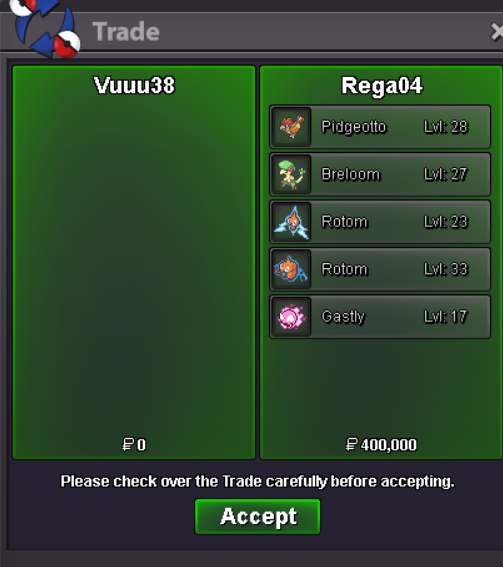 Start Price: 2m End Point: 48 hours (after start) No Insta Min Raise: 200k Accepted Payments: Pokedollars, Coin Capsules (x1 Coin Capsule = 500k), IV Reroll Tickets (x1 IV Reroll Ticket = 700k)