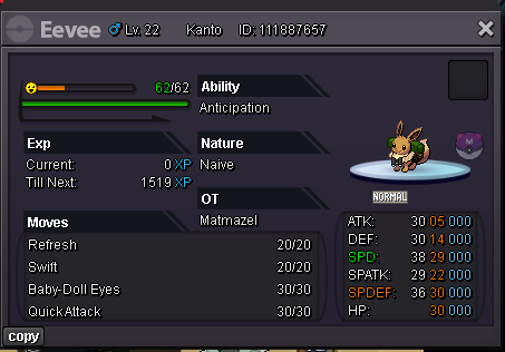 Auction details: - Starting offer: 22m - Minumum raise: 500k - Instant offer: N/A - Accepted payments: Pokedollars, coin capsules = 500k - End point: 48 hours after starting offer is met. Additional information: - Bid on forum only. - This is a silver server auction. You can bid from the gold server, IF you take care of account transfer yourself. - If a bid is received in the final 15 minutes of the auction, the end point will be delayed by 15 minutes from that bid, and will be delayed by 15 minutes for each new bid thereafter, until the current offer has been held for a full 15 minutes.
