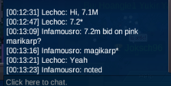 2. startprice: 500k Minraise: 100k insta: 2m Time: 24h after time is met (just meet in kanto or johto) cc=500k 15 min rule active