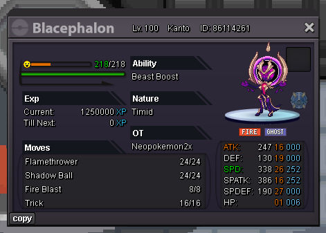 Note: A Dark Star–themed Pokémon — a Halloween sub-genre found only in the Haunted Cave Depths. This represents a rare opportunity to add an exclusive piece to your collection. Auction Details: Start Price: 15m End Point: 66 hours (after start price is met) Insta Price: N/A Minimum Raise: 200k Accepted Payments: Pokedollars, Coin Capsules (x1 Coin Capsule = 450k) Important Reminders: This is a Gold Server auction. However, you may bid from any server, and I will transfer to your preferred server upon winning. If you intend to purchase with an alt account, specify the account alongside your bid. If a bid is received in the final 15 minutes of the auction, the end point will be delayed by 15 minutes from that bid, and will be delayed by 15 minutes for each new bid thereafter, until the current offer has been held for a full 15 minutes. Happy Bidding! -