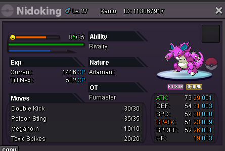 Fumaster started following WTS Nidoking Adamant (31 Def/30 Spd) & Jolly Hitmonlee