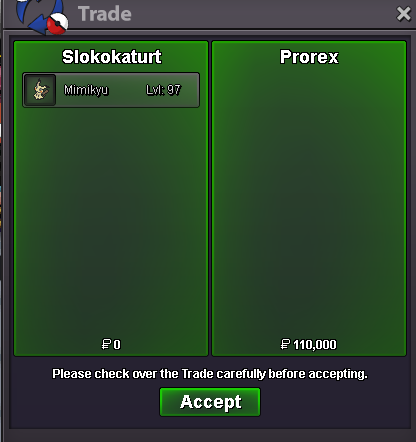 Starting offer: 100k Min bid: 50k Auction end 48 hours after the first bid Only Pokedollars sorry :3