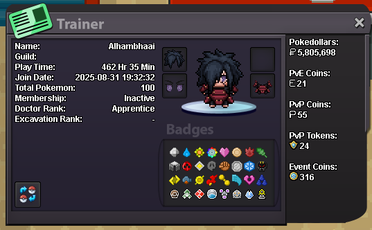 Hi all! New player here, Italian and full Slytherin : I really wish to join What is your in-game name (IGN)? Alphaulfric How many hours have you logged in PRO? 20 Do you know any existing members? No What is your previous guild, if any? None What is your favorite Pokémon? Mewtwo Which event do you look forward to the most? None in particular as i'm a new player What are your main interests in PRO? (PvP, PvE, Hunting, etc.) PvE, Hunting What is your highest PvP rating? None Do you have any dungeon experience? Not yet Are you comfortable using voice chat in English for dungeon runs? (needed for anyone interested in running dungeons) Yes