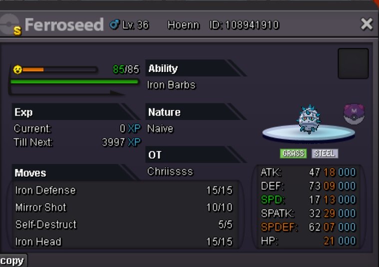 Fabion started following 【SEMI GODLY】careful Ferroseed 31def&31hp 26+