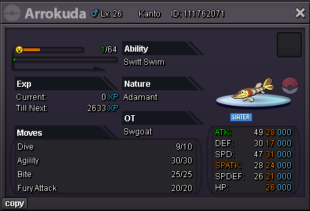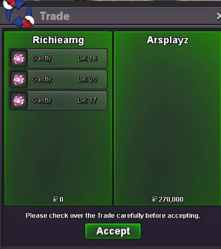 Hello, I can only do transactions with players on Silver Server! Available Payments: Pokedollars Coin Capsule: -500k Rare Candies: -70k Auction: SHOP Important: Please say the CODE of the pokemon you wanted to bid or buy.