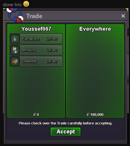 Welcome Everyone to Youssef007 SERVICE SHOP I am an old Gold Server player providing Story, Lvl & Ev Services at fair and trusted prices. (More to come with your support) why choose us Years of Experience very quick service Trusted player Safe process History Talks Accepted Payments Pokedollars Coin Capsule = 500k Reroll Ticket = 750k Nature Reroll Ticket = 350k Rare Candy = 6k Contact Me: IGN: Youssef007 Discord: Youssef0077096