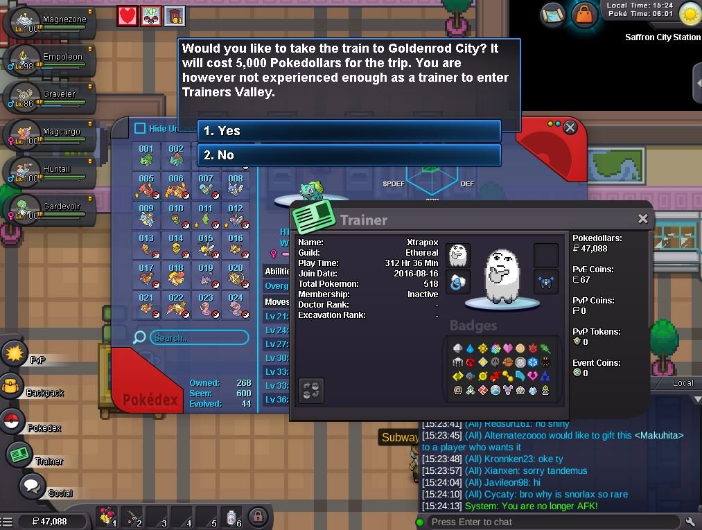 Hello I Can't Get in Trainers Valley guard says im not experienced enough. I already did subway quest, won RED on top of MT Summit, and have 312 hours of playtime, 121 kanto pokes caught, total owned pokes 268, seen pokes 600, evolved pokes 44. am I missing something? plz help thx