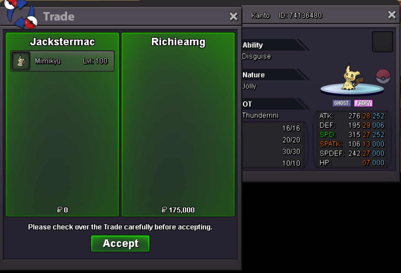 Start Price: 2m5 End Point: 48 hours after the start price is met No Insta Minimum Raise: 100k Accepted Payments: Pokedollars Coin Capsules (1 CC = 480k) IV Reroll Tickets (1 IV Reroll = 700k) Apply rule: 15 minutes Duration: https://thorsenlabs.com/timer?172800/1765943781