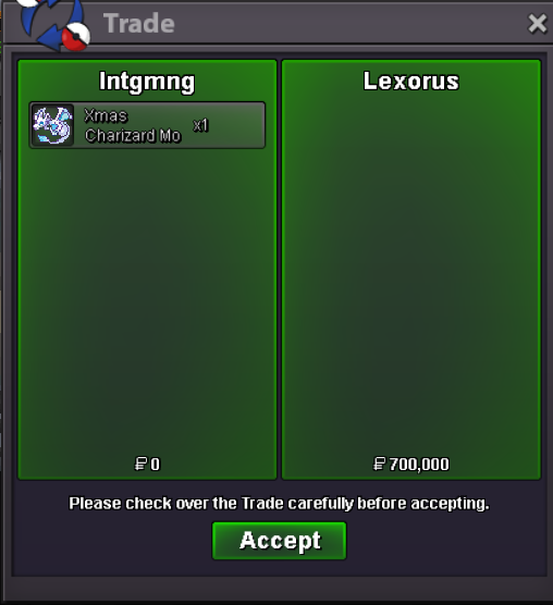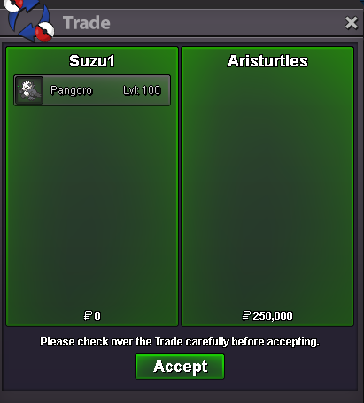 Hello @Gialos, In the future, please ensure that you assign a value to accepted payments (that are not pokedollars). For example: Coin Capsule = 500k Sincerely, Tandemaus -