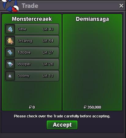 Start Price --> 2m End Point--> 24 hour after first bid Insta --> N/A minimum bid --> 200k Accepted Payments: Pokedollars, Coin Capsules (x1 Coin Capsule = 500k), IV Reroll Tickets (x1 IV Reroll Ticket = 750k) Important Reminders: This is a Silver Server auction. However, you may bid from any server, and I will transfer to your preferred server upon winning. If you intend to purchase with an alt account, specify the account alongside your bid. If a bid is received in the final 15 minutes of the auction, the end point will be delayed by 15 minutes from that bid, and will be delayed by 15 minutes for each new bid thereafter, until the current offer has been held for a full 15 minutes.