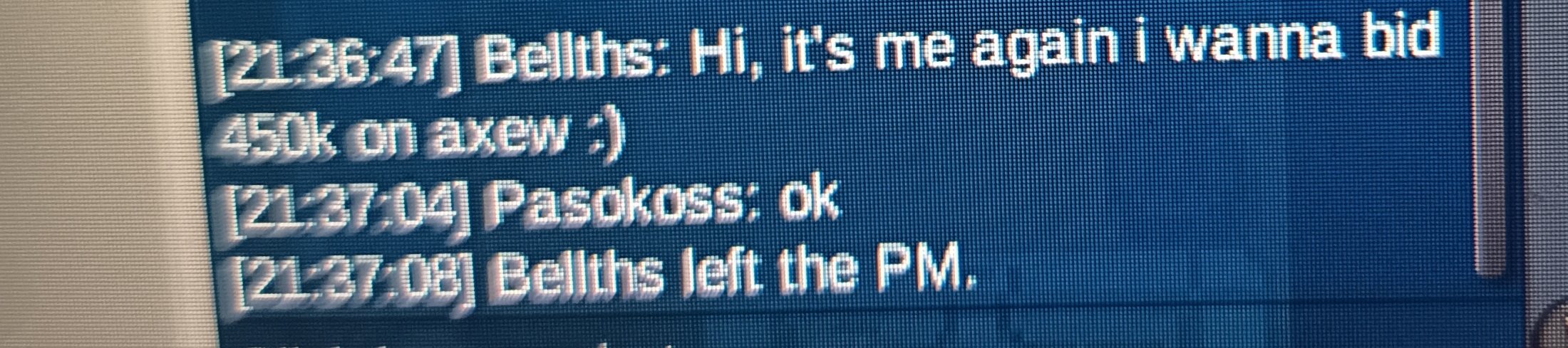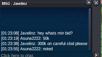 startprice: 100k Min raise: 100k time: 24h after startprice is meet no insta accept = reroll ticket; cc=500k 15 min rule acctive